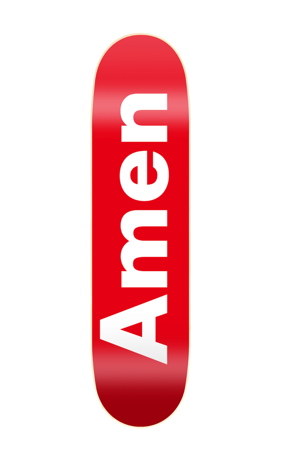 Inspirée des codes iconiques du streetwear, cette planche frappe fort avec sa typographie massive d'un blanc immaculé sur un rouge sang profond. C'est la planche de ceux qui rident avec conviction, de ceux qui n'ont pas besoin d'en faire trop pour être vus. Vous replaquez votre trick, la rue répond : Amen.